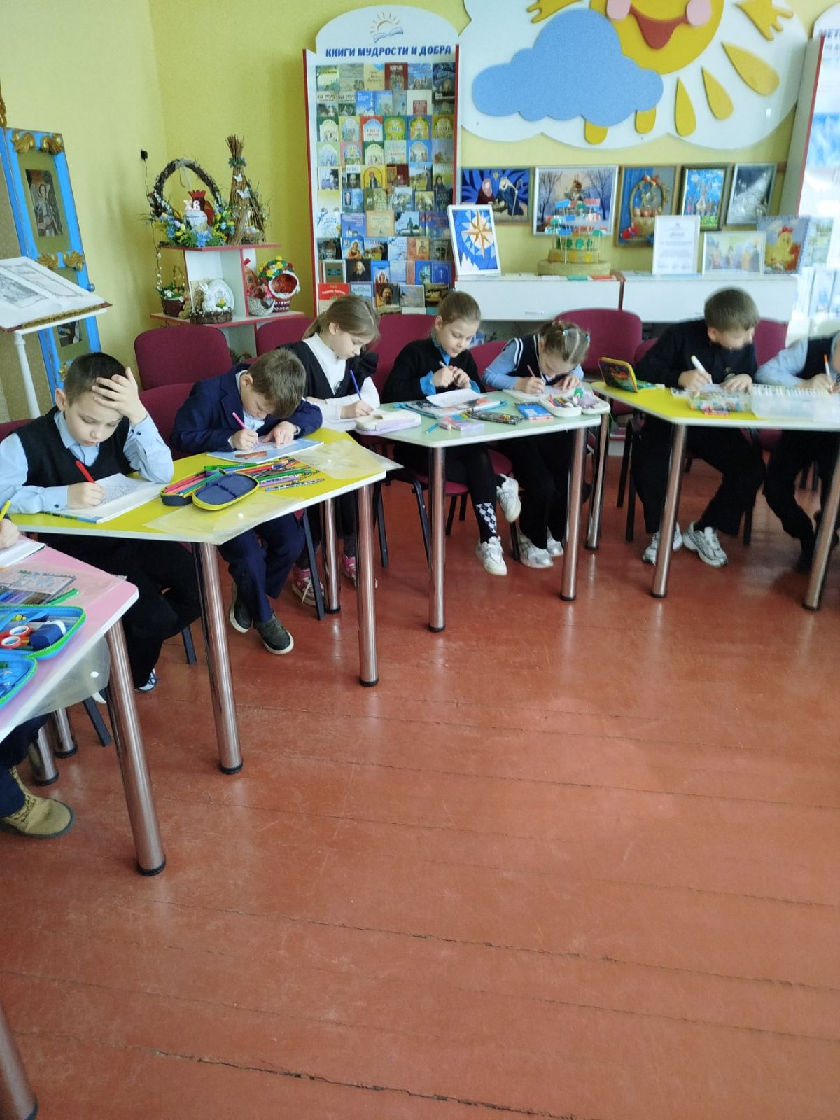 Для ребят была организована творческая мастерская «Светлый праздник Пасхи». В ходе мероприятия дети познакомились с христианскими традициями празднования Пасхи, обсудили их смысл через беседу и загадки, выполнили творческую поделку «Пасхальный декор» и представили свои работы. Особое внимание было уделено мысли о важности подготовки к празднику, воспитанию доброты и стремлению нести радость ближним при просмотре видеоролика.