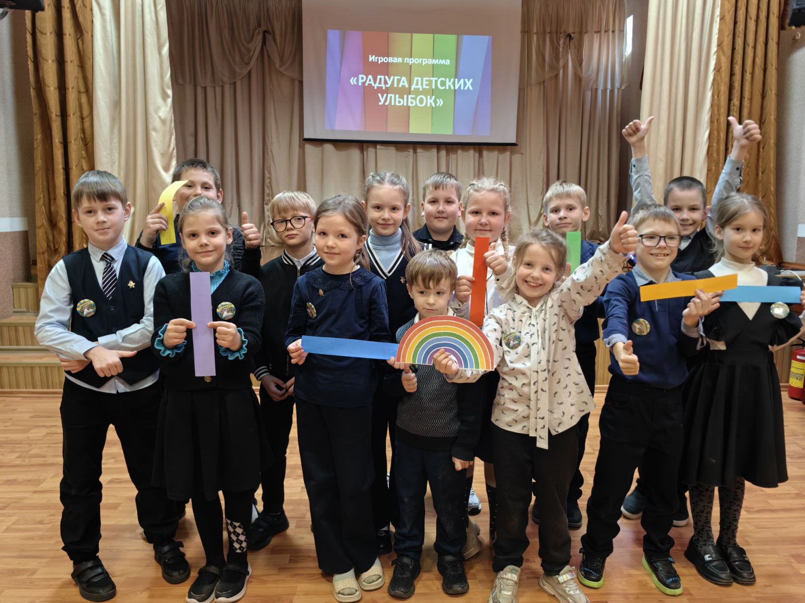 Первый день апреля в нашей школе прошел по-особенному ярко и весело! Для учеников начальных классов мы подготовили увлекательную игровую программу под названием "Радуга детских улыбок", и она полностью оправдала свое название! Ребята с огромным энтузиазмом выполняли самые разнообразные и забавные задания. За каждое успешно пройденное испытание они получали полоску определенного цвета радуги. И как же здорово было наблюдать, как постепенно в руках каждого ребенка появлялся свой кусочек яркого спектра!