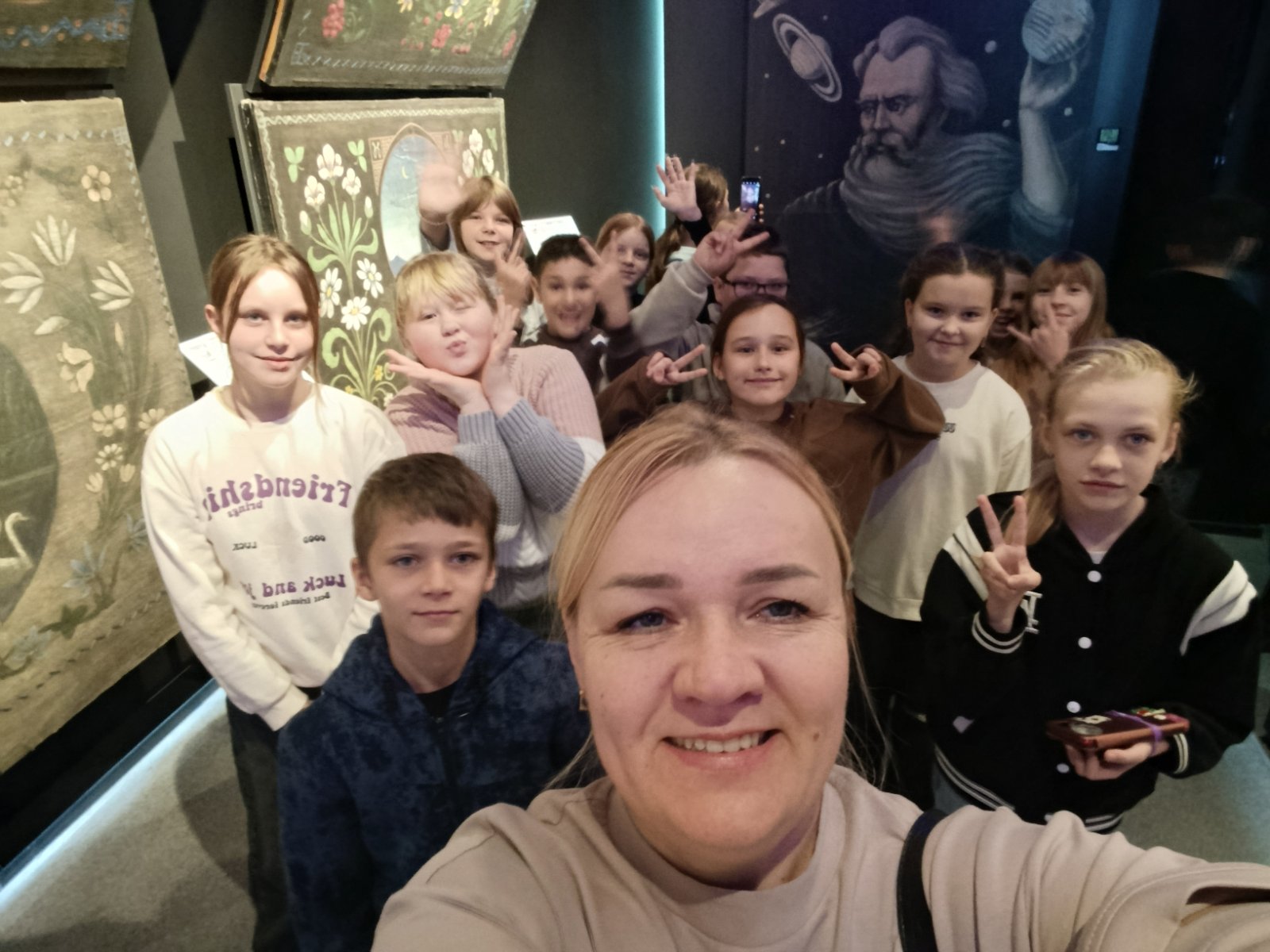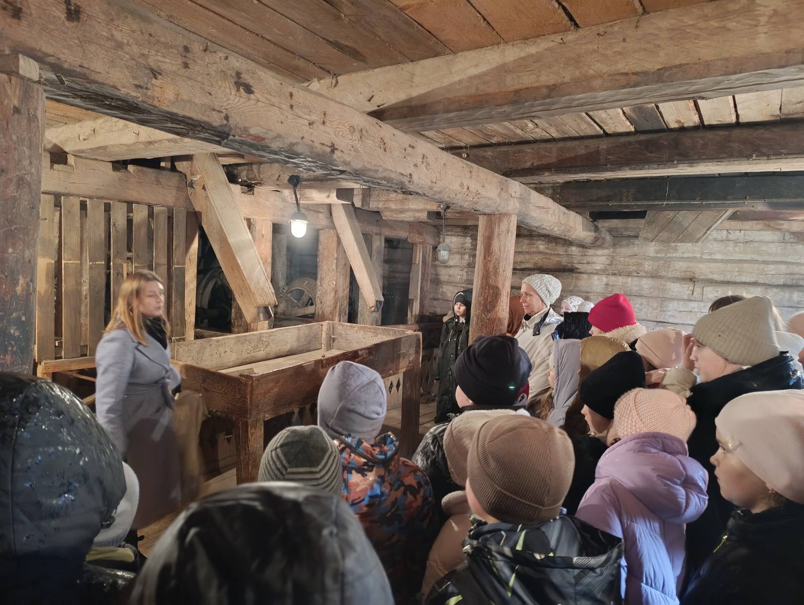 Первым пунктом программы стал Этнографический комплекс "Млын", где дети смогли увидеть, как жили и работали наши предки. Они посетили настоящую мельницу ("млын"), кузницу, хату завозніка (дом перевозчика) и свиран (амбар). Ребята с интересом рассматривали старинные инструменты и предметы быта, представляя, как они использовались в повседневной жизни. Затем группа отправилась в Музей беларусскай маляванки. "Маляванки" – это уникальные белорусские ковры, расписанные яркими красками. Дети были поражены красотой и разнообразием узоров, а также узнали много интересного об истории и технике создания этих произведений народного искусства.