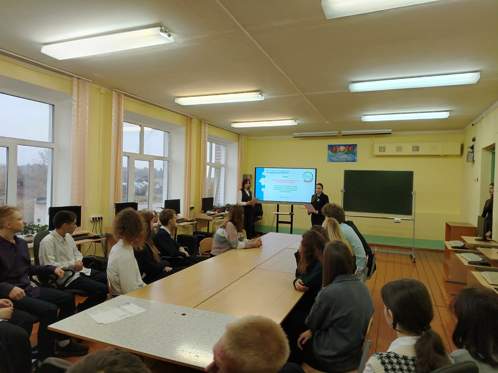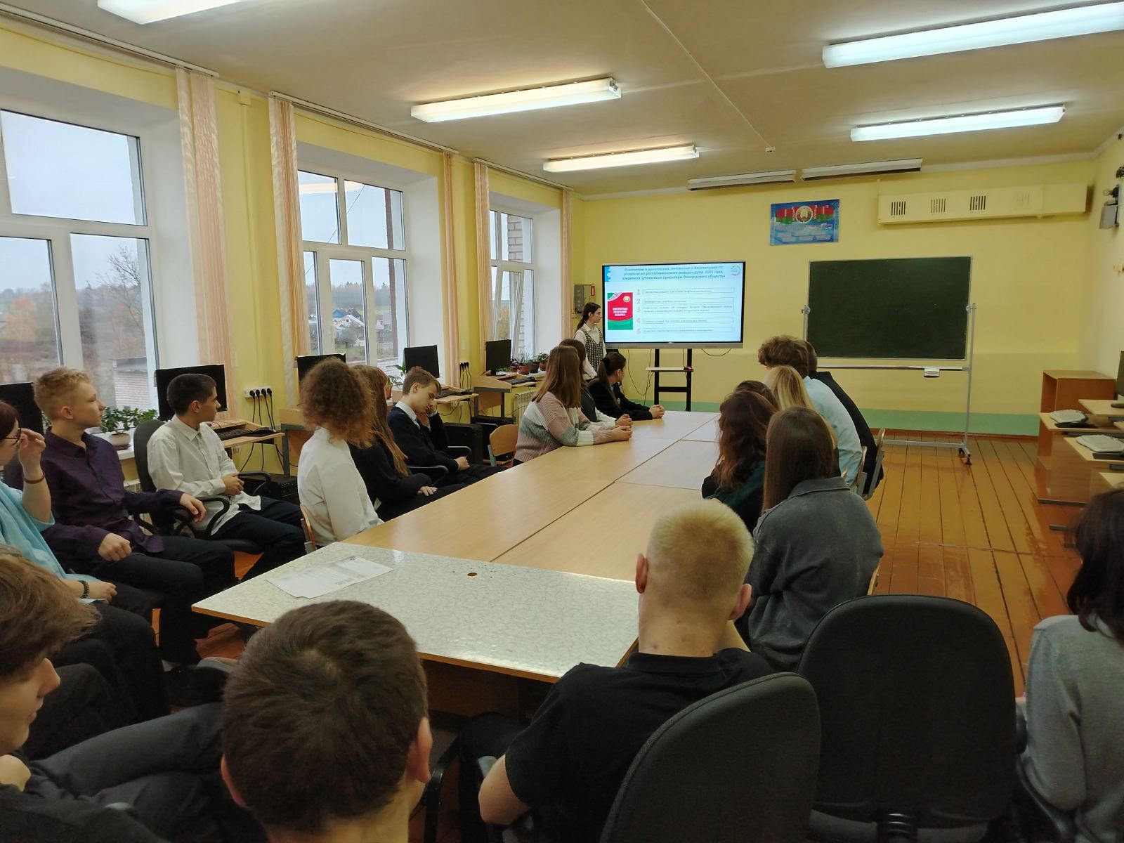Обсуждение прошло в формате групповой работы с последующим обменом мнениями. Учащиеся активно отвечали на вопросы, касающиеся изменений в Конституции, полномочий Президента и функций Всебелорусского народного собрания. На заключительном этапе учащиеся обсудили, как можно реализовать свои инициативы во благо страны: участие в школьных и районных проектах; волонтёрская деятельность; создание информационных стендов о правах граждан; подготовка видеороликов о Конституции и гражданской ответственности
